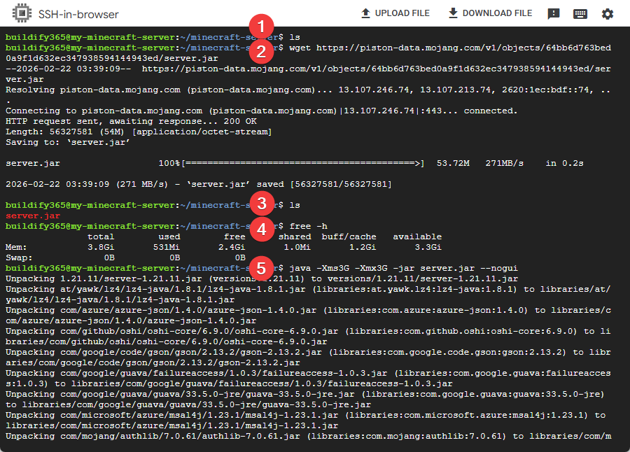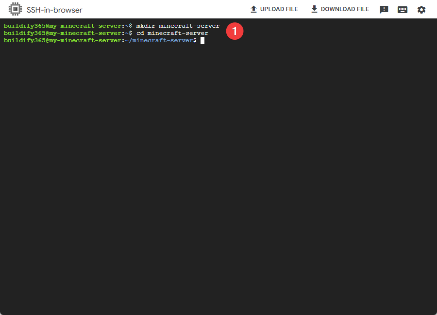 mkdir minecraft-server && cd minecraft-server