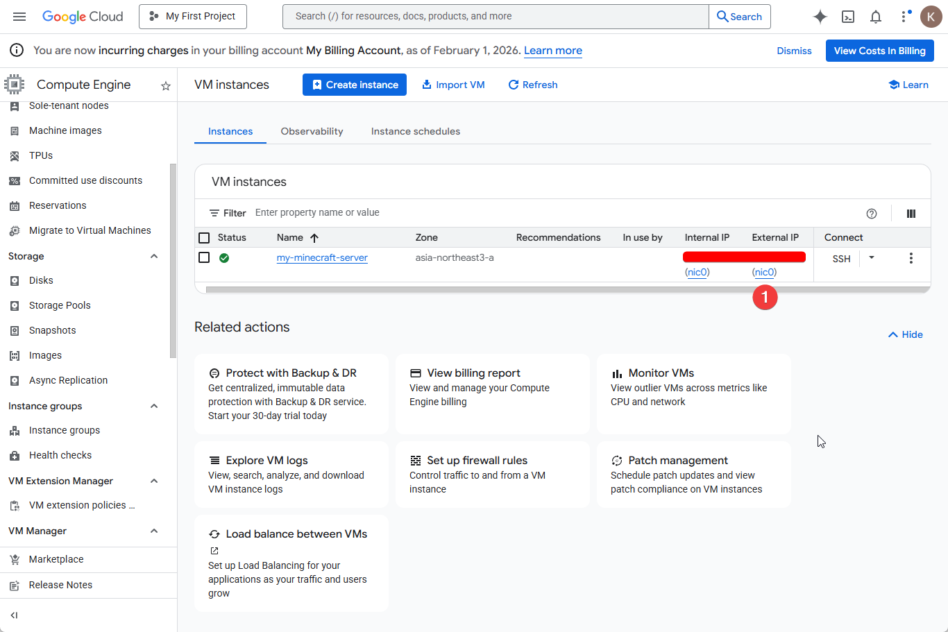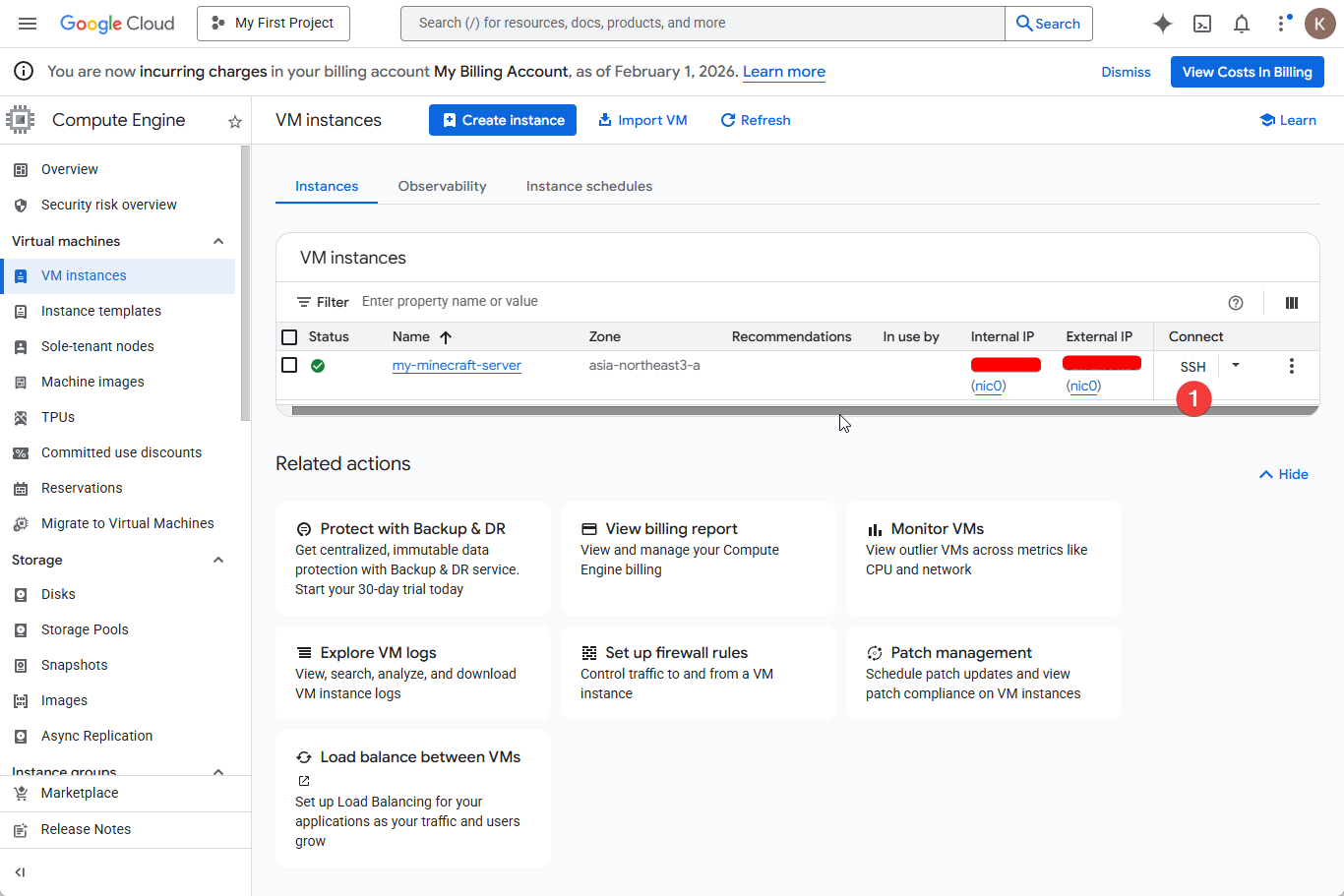 | 해결 | GCP 무료 크레딧($300)으로 마인크래프트 서버 구축! |