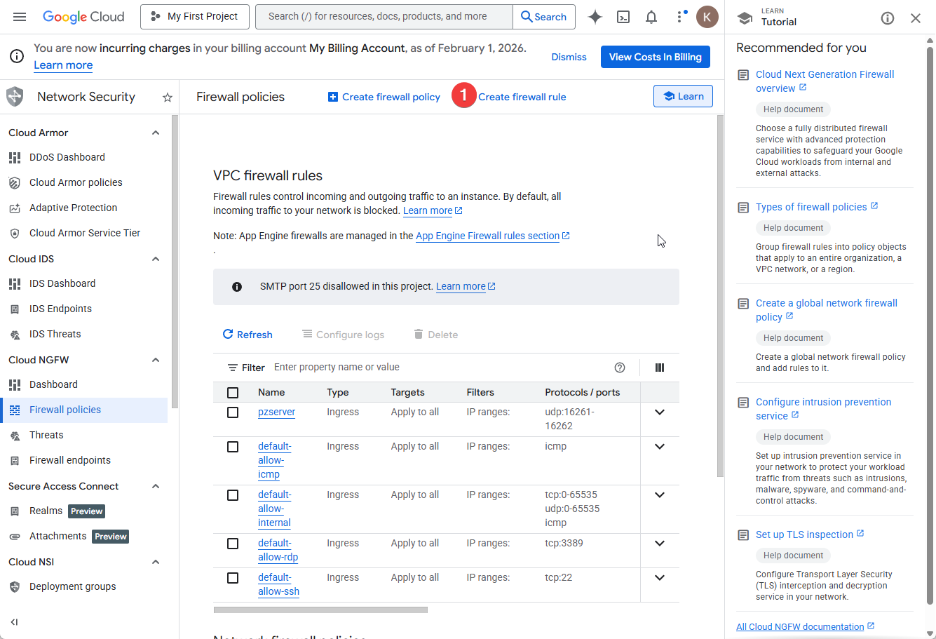 GCP 콘솔에서 VPC 네트워크 → 방화벽 → 방화벽 규칙 만들기를 클릭합니다.