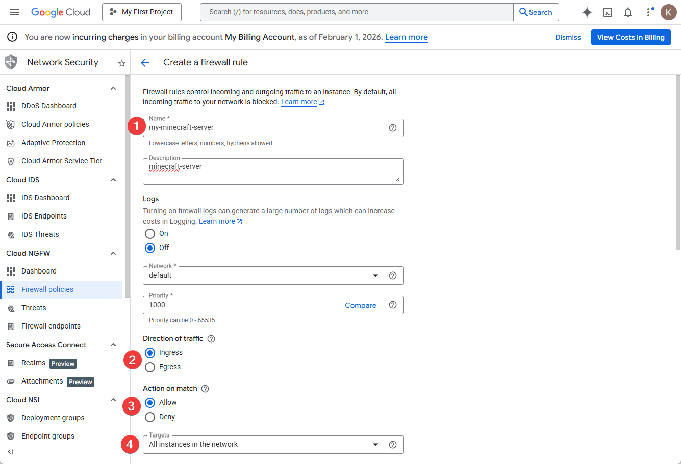 - 포트 열기 → GCP 방화벽에서 TCP 25565 허용