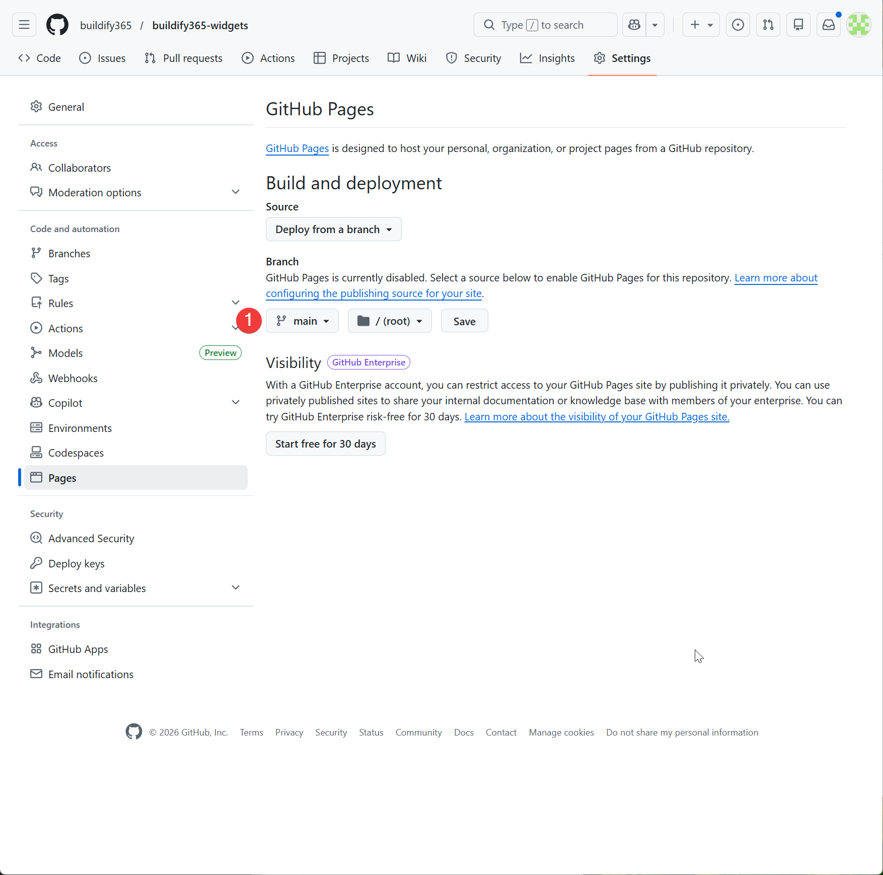 buildify365-widgets(다른 이름도 OK) - Public 선택 (GitHub Pages 무료 사용을 위해 공개 필요) → [이미지 17]