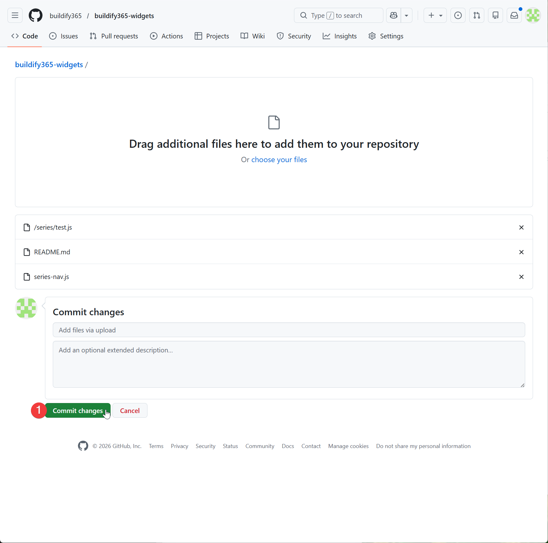 5. 아래쪽 Commit changes 클릭하여 저장 → [이미지 20]
